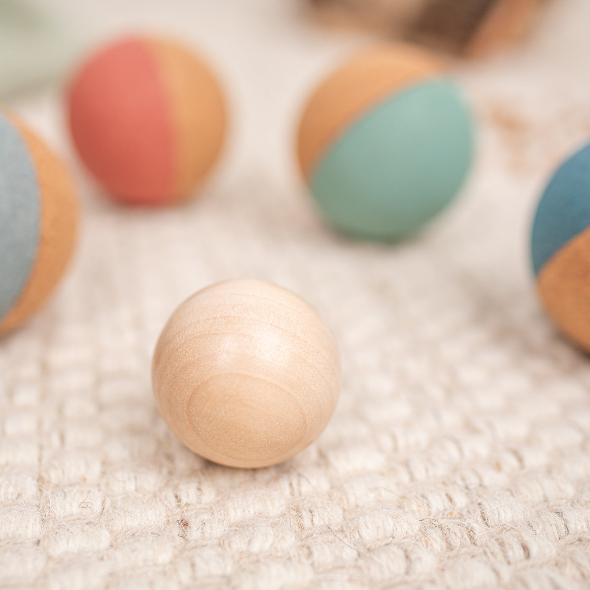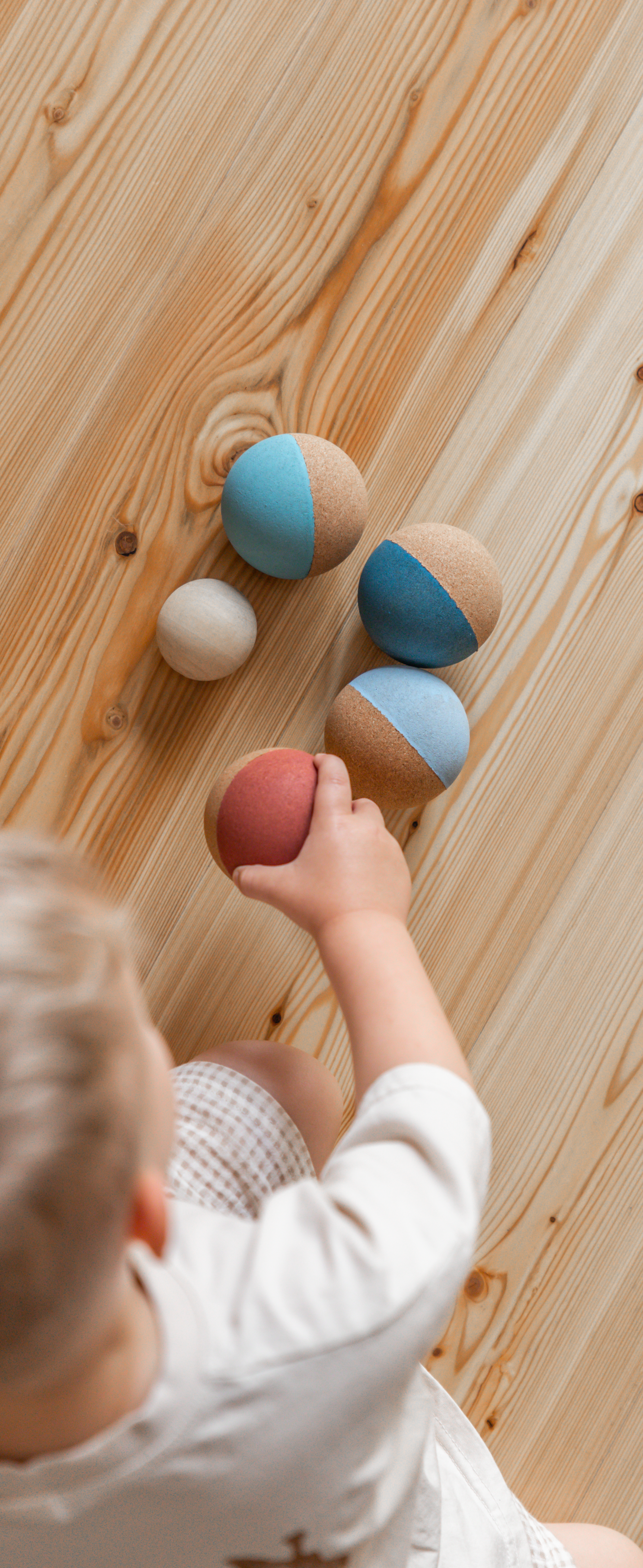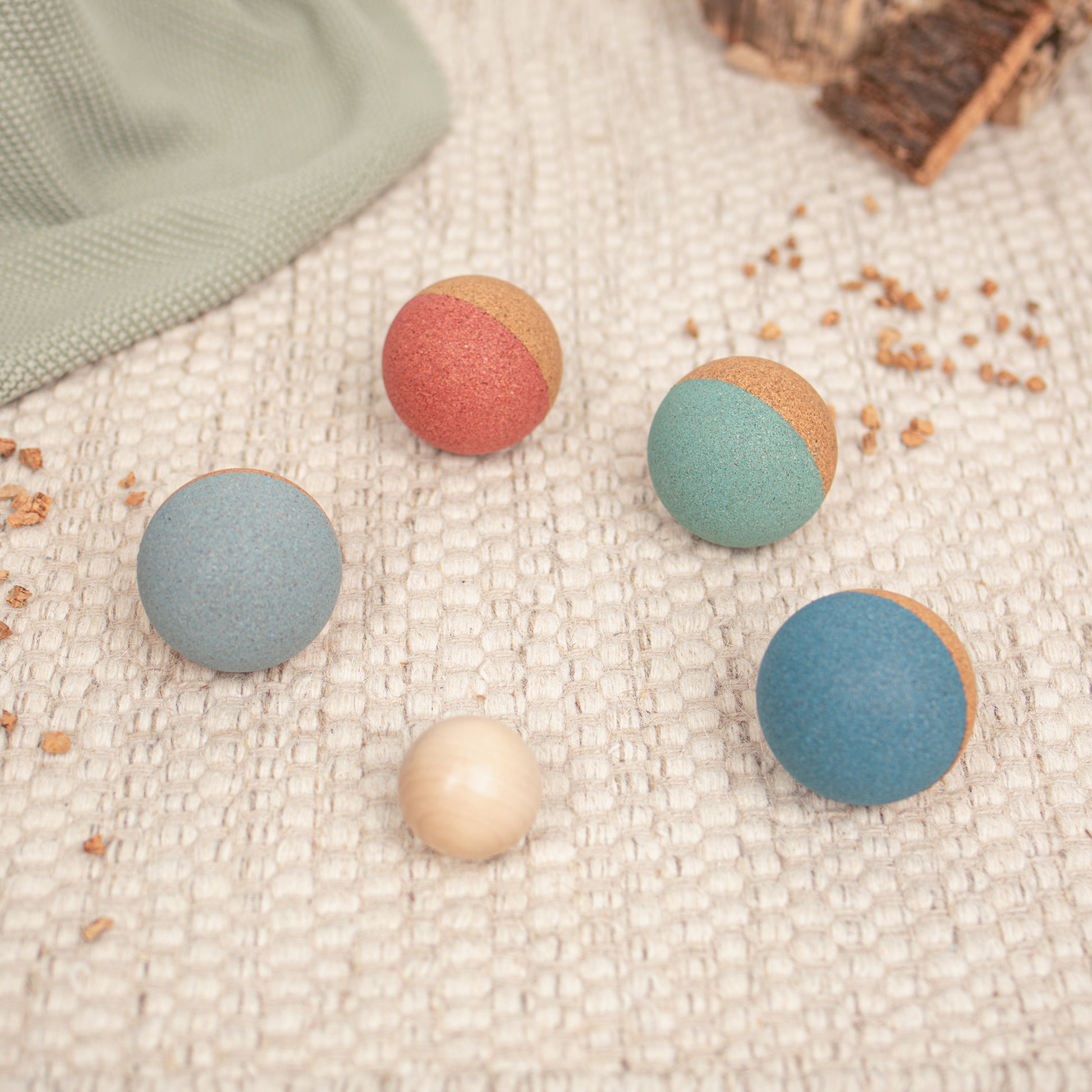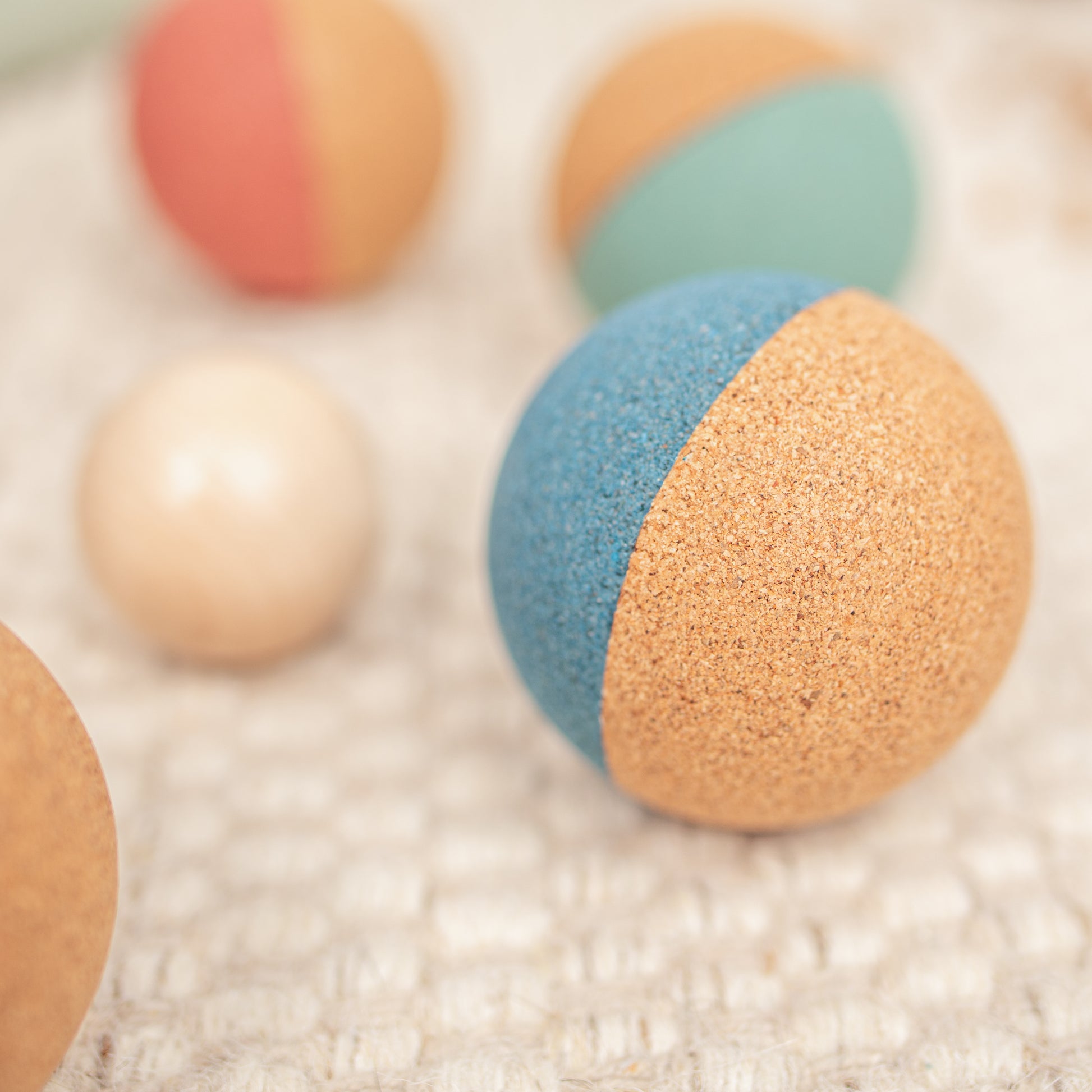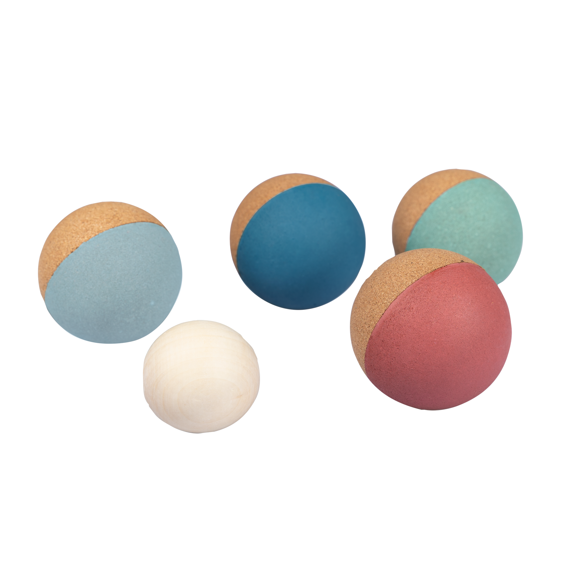 A Cork Boccia Set for fine motor and social skill development. Experience excitement with a Korko twist on the classic Boccia game! Our Super Champions set includes 4 cork balls and one wooden ball, making it perfect for indoor or outdoor play. This game not only offers endless fun but also enhances fine motor skills, sparks creativity, and encourages socialization. With this set you'll find everything you need for an engaging match and endless fun.