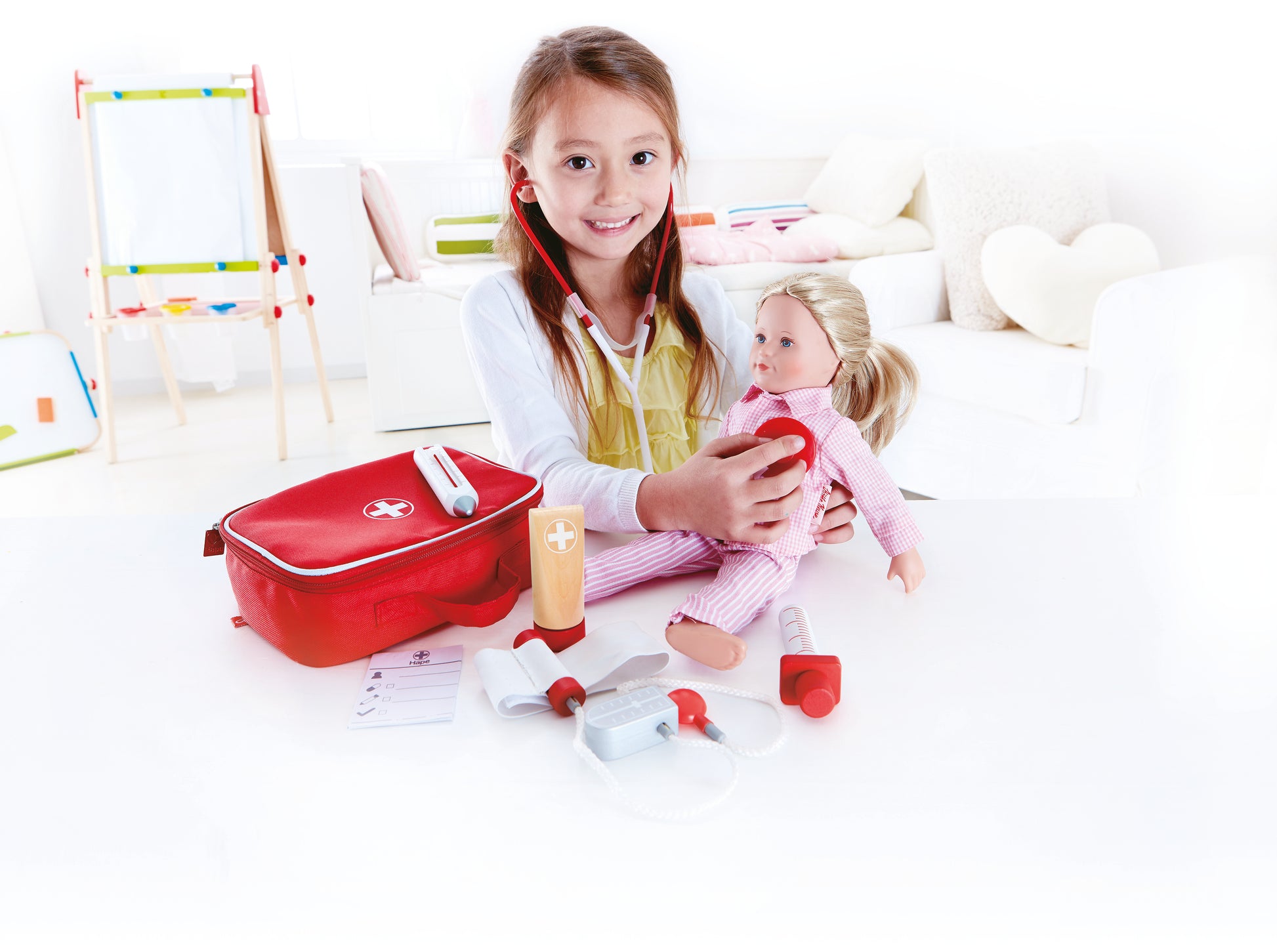 With the doctor set, little doctors can treat their patients immediately. The instruments such as stethoscope, fever thermometer and other medical utensils look realistic.