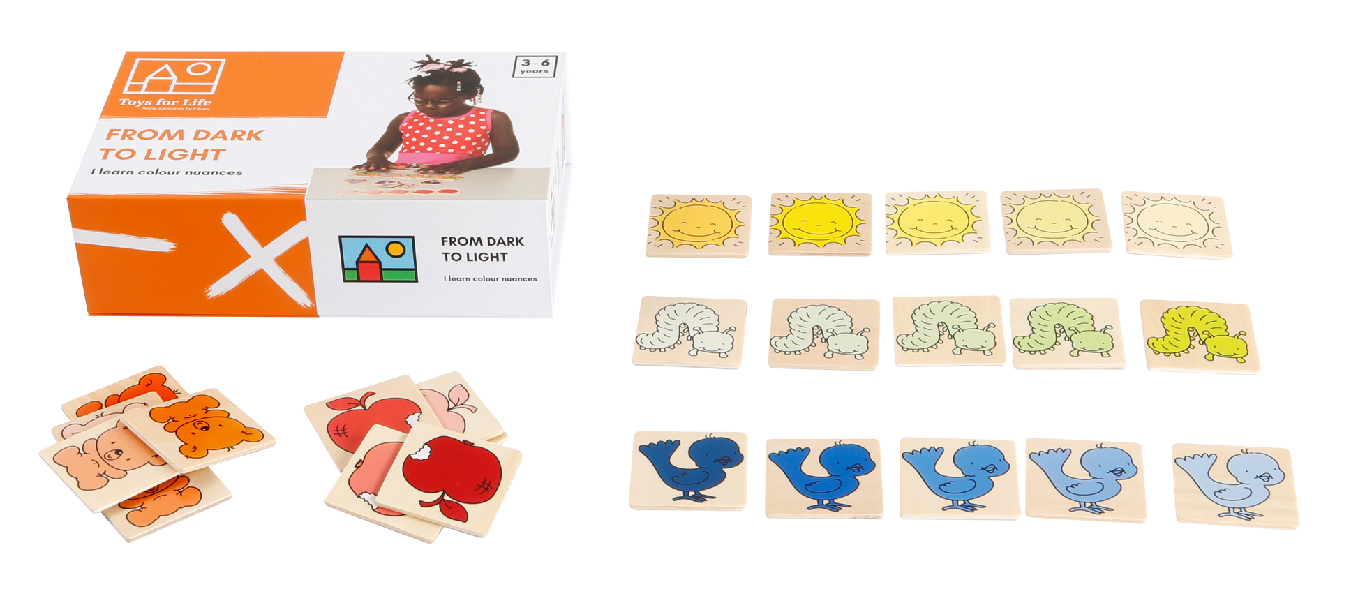Sort cards from darkest to lightest and vice versa. Learn to understand gradations of hue and the impact it has on images.