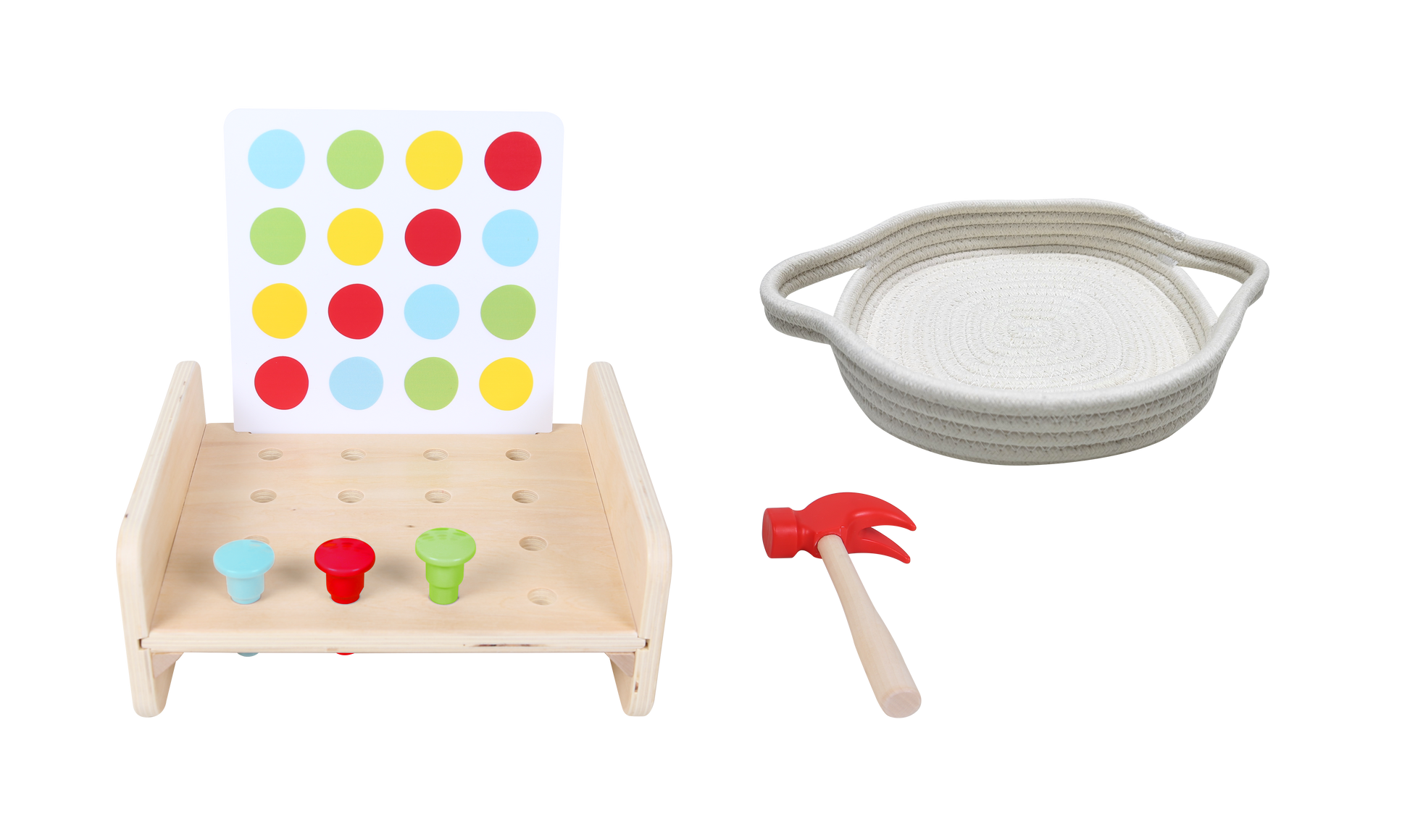 Fun and fascinating hammer game. Children can hammer nails into the holes based on the pattern cards or create their own pattern. It improves children's hand-eye coordination, dexterity and arm movement.