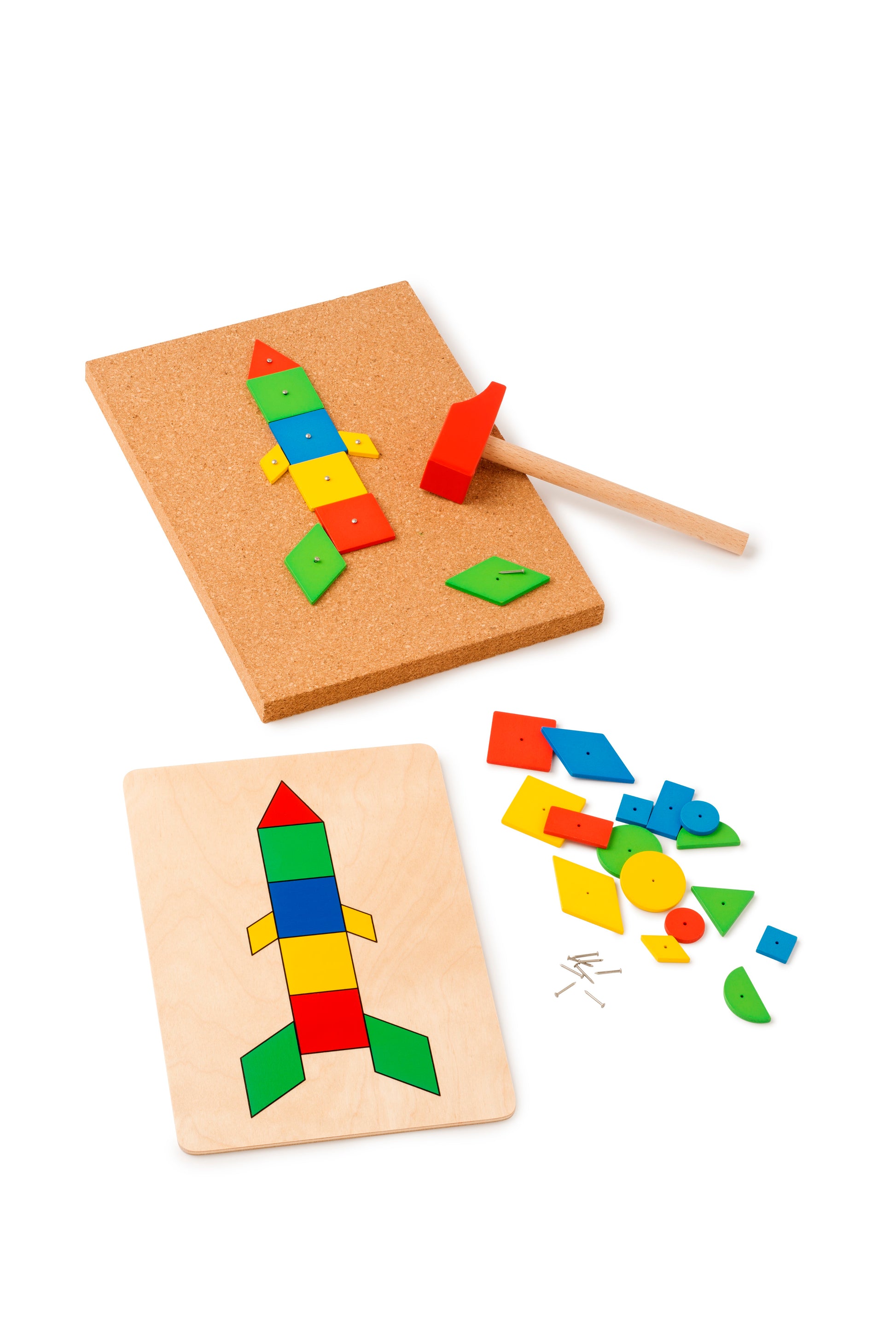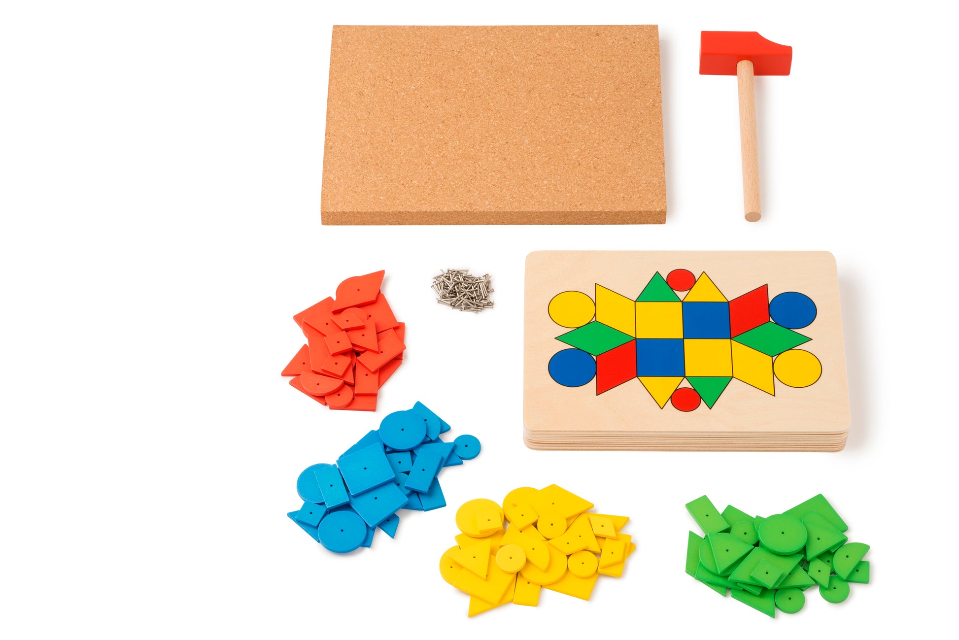 Create mosaic designs with geometric shapes in various colours. Model one of the assignment cards or make your own unique creations. Improve fine motor skills and hand-eye coordination.