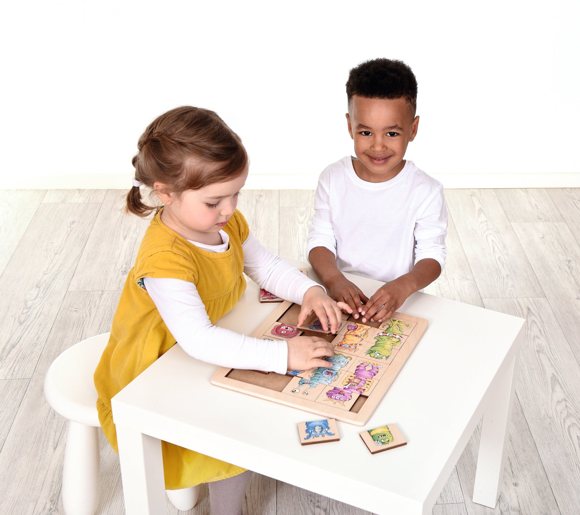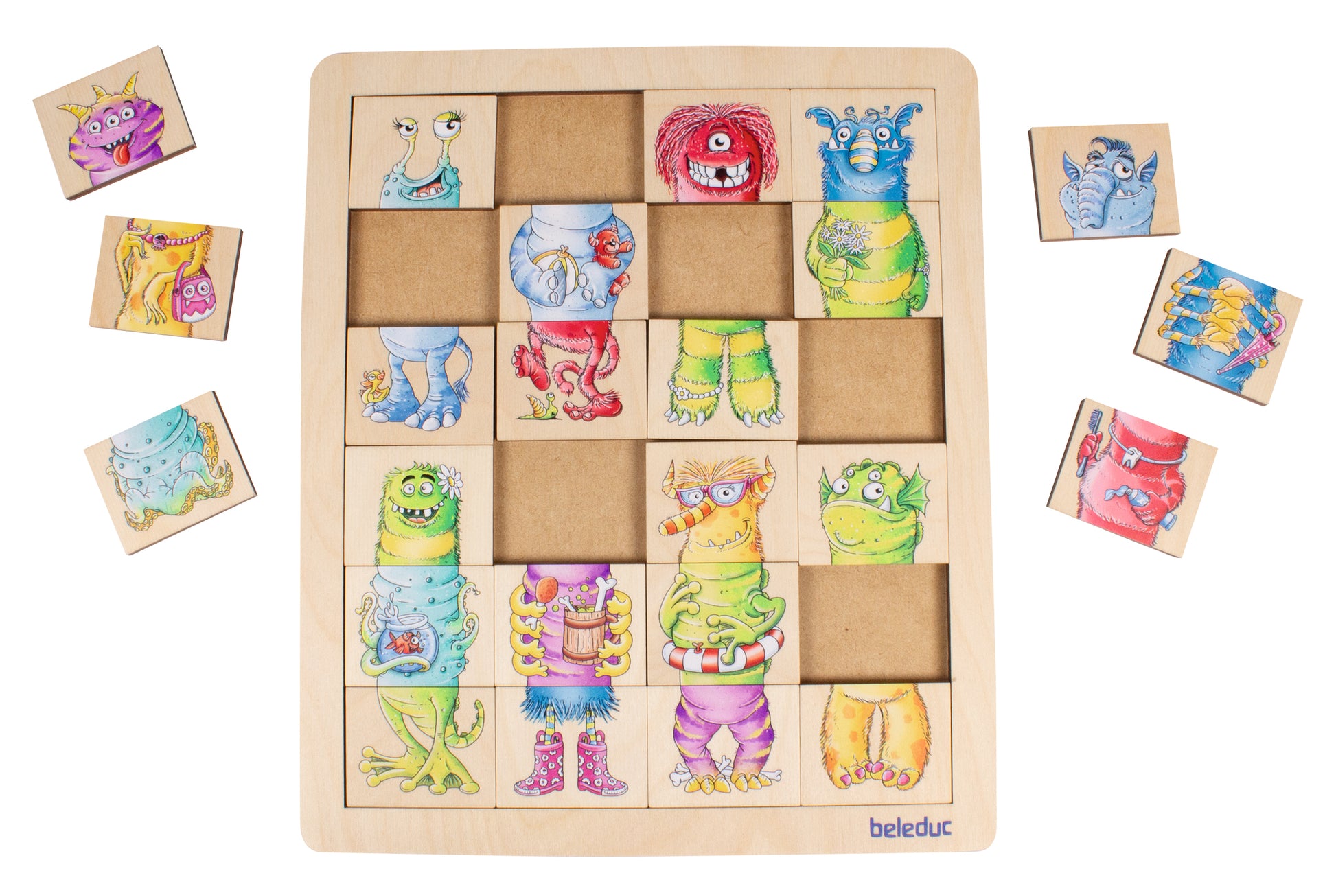 The monsters are on the loose! Little cheeky monsters are all mixed up. Who can manage to keep track? They can either be matched together by colour or mixed imaginatively. Create funny stories about the monsters and talk about things that you notice.