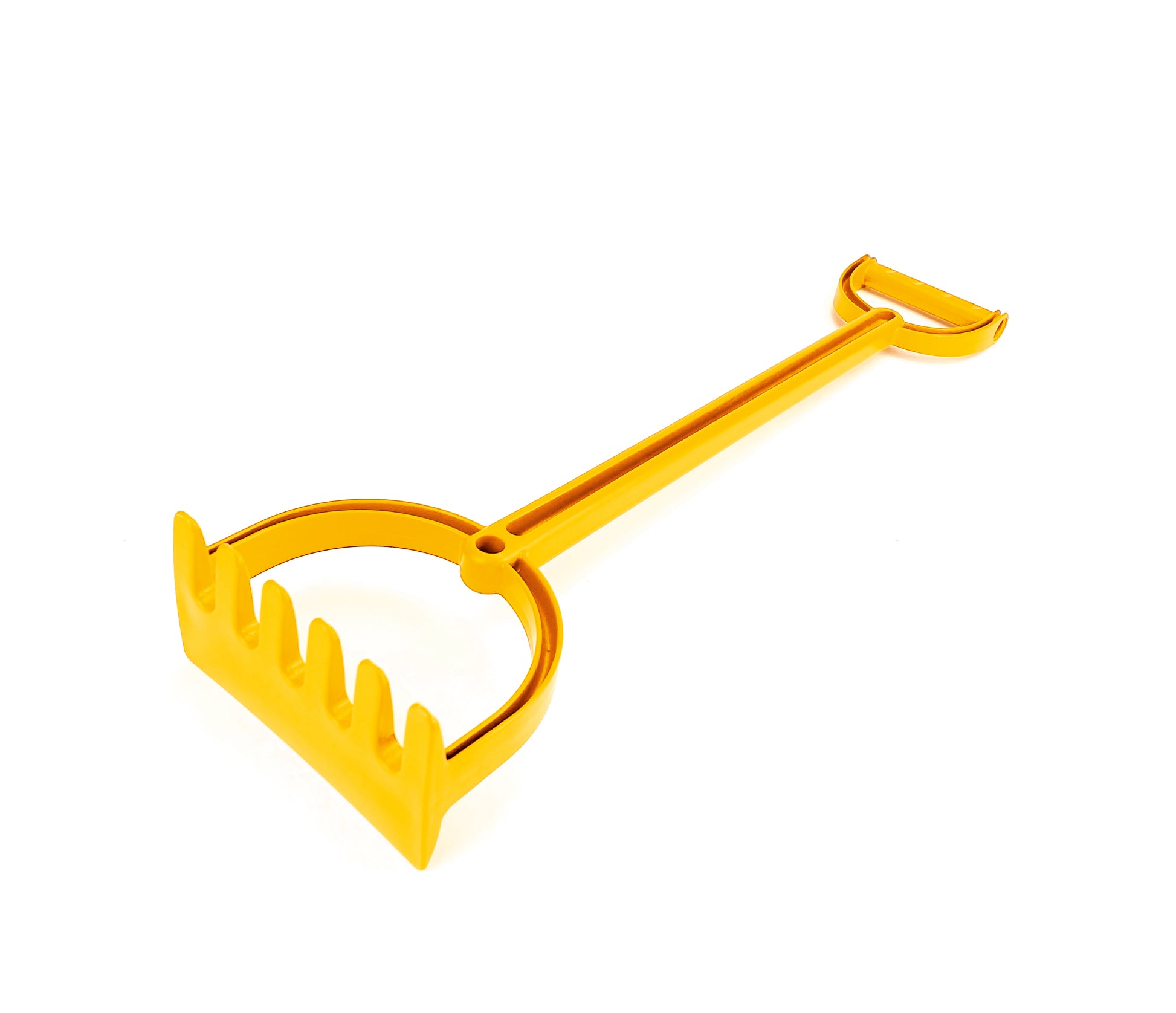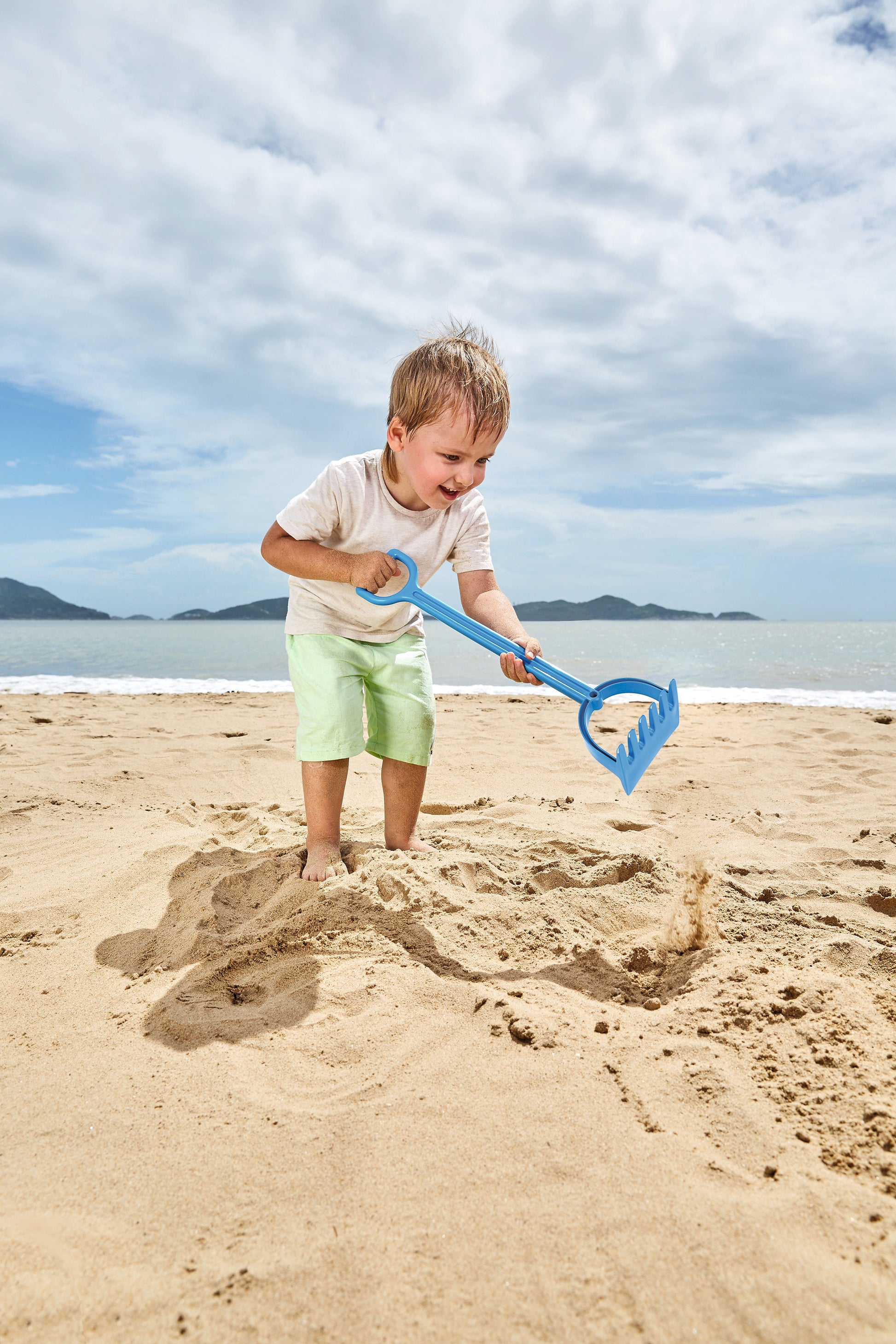 With the multi rake, you get two play options in one product: you can use it as a classic rake or turn it around and use it as a scraper to create smooth sand surfaces. Measures 60cm.
