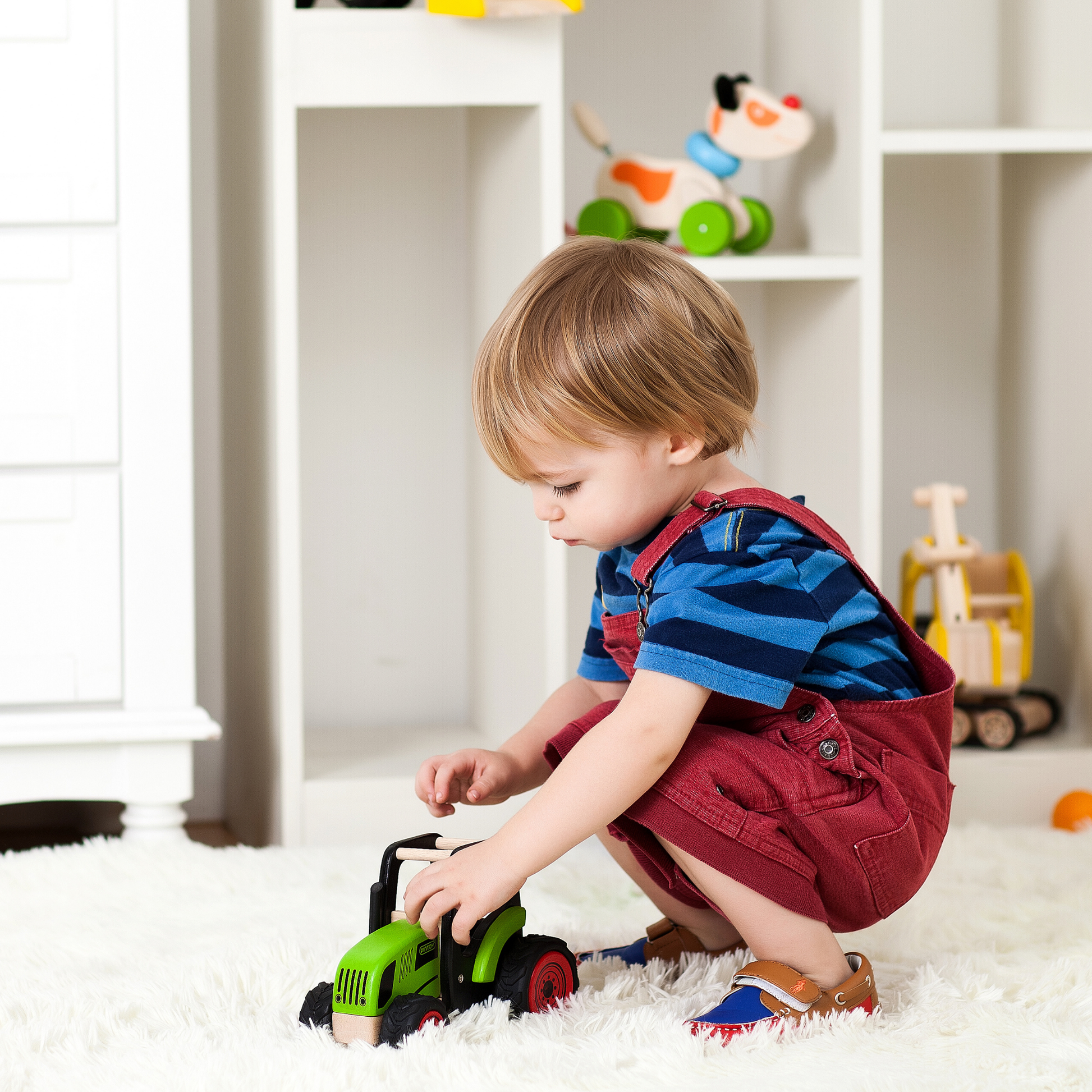 This wooden tractor with a trailer encourages creativity and enhances hand-eye coordination skills in children. Perfect for imaginative play, this toy can be enjoyed by every child in the family, providing endless opportunities for fun and learning as they explore their creative abilities.
