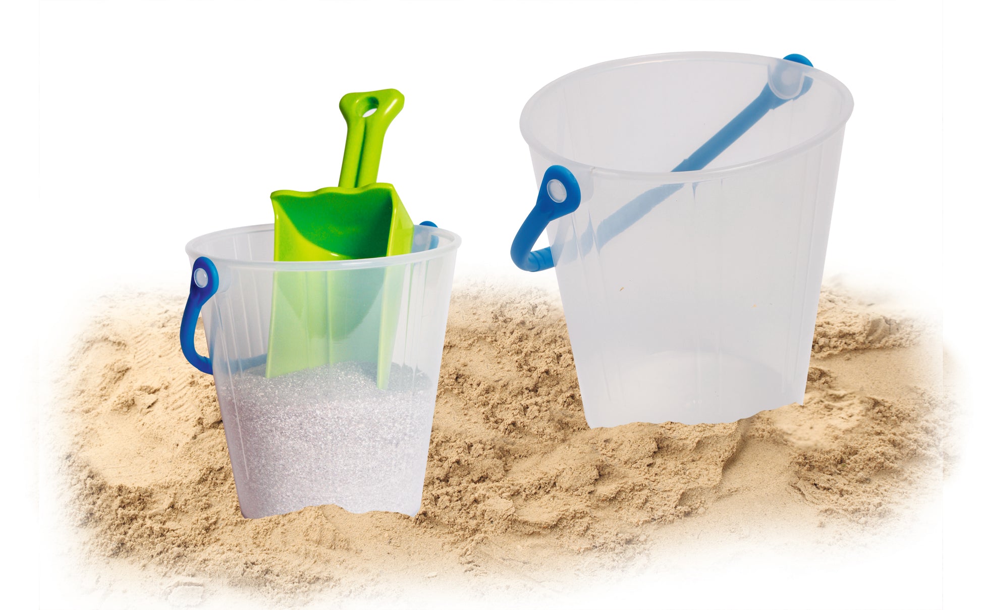 The transparent bucket has a capacity of 1.5L. It does not only invite children to build sand castles, but introduces them in a playful way to exploring and discovering water amounts and capacities.