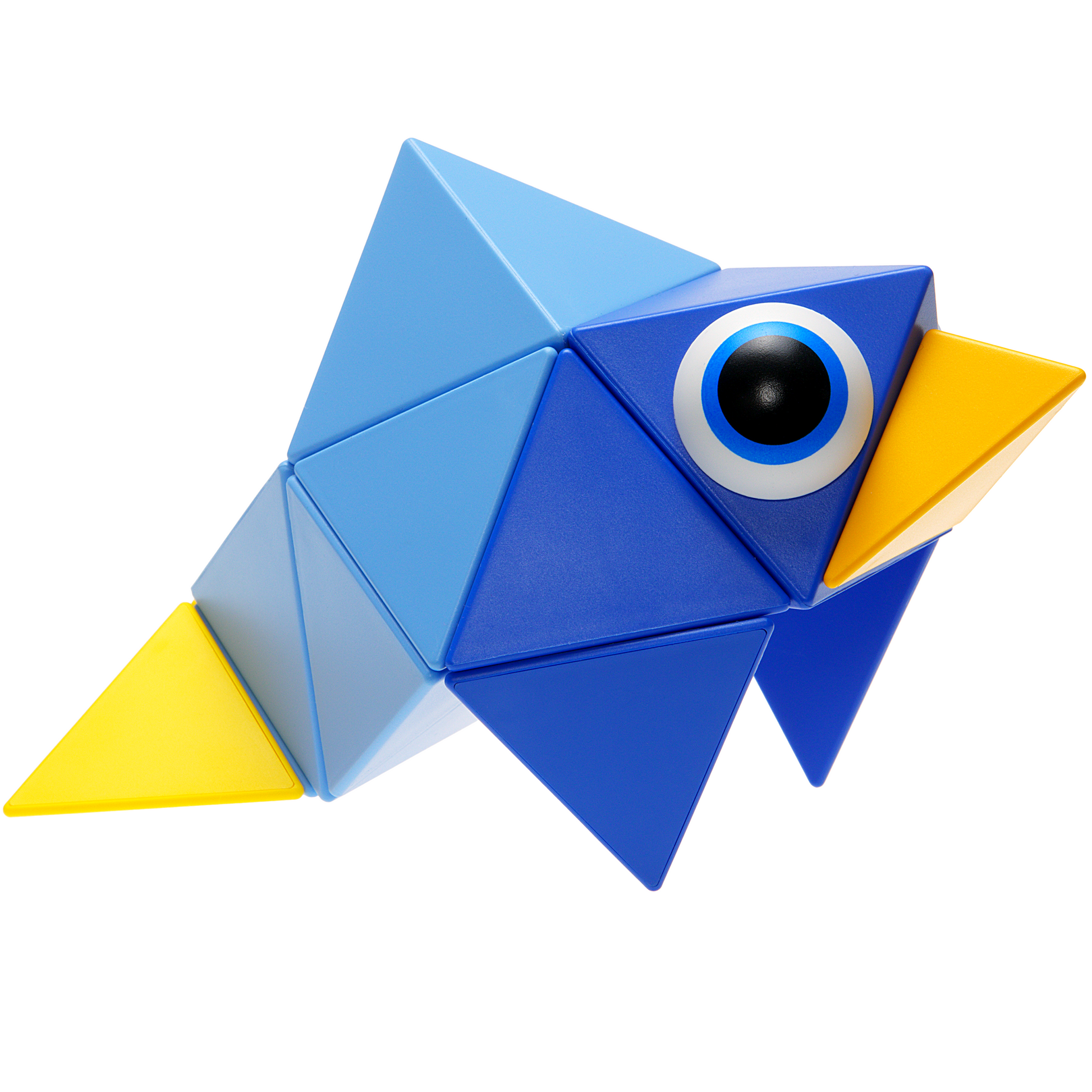2 octahedrons, 4 tetrahedrons, 4 half-tetrahedrons, 2 eyes (in total 12 pieces) + Leaflet.